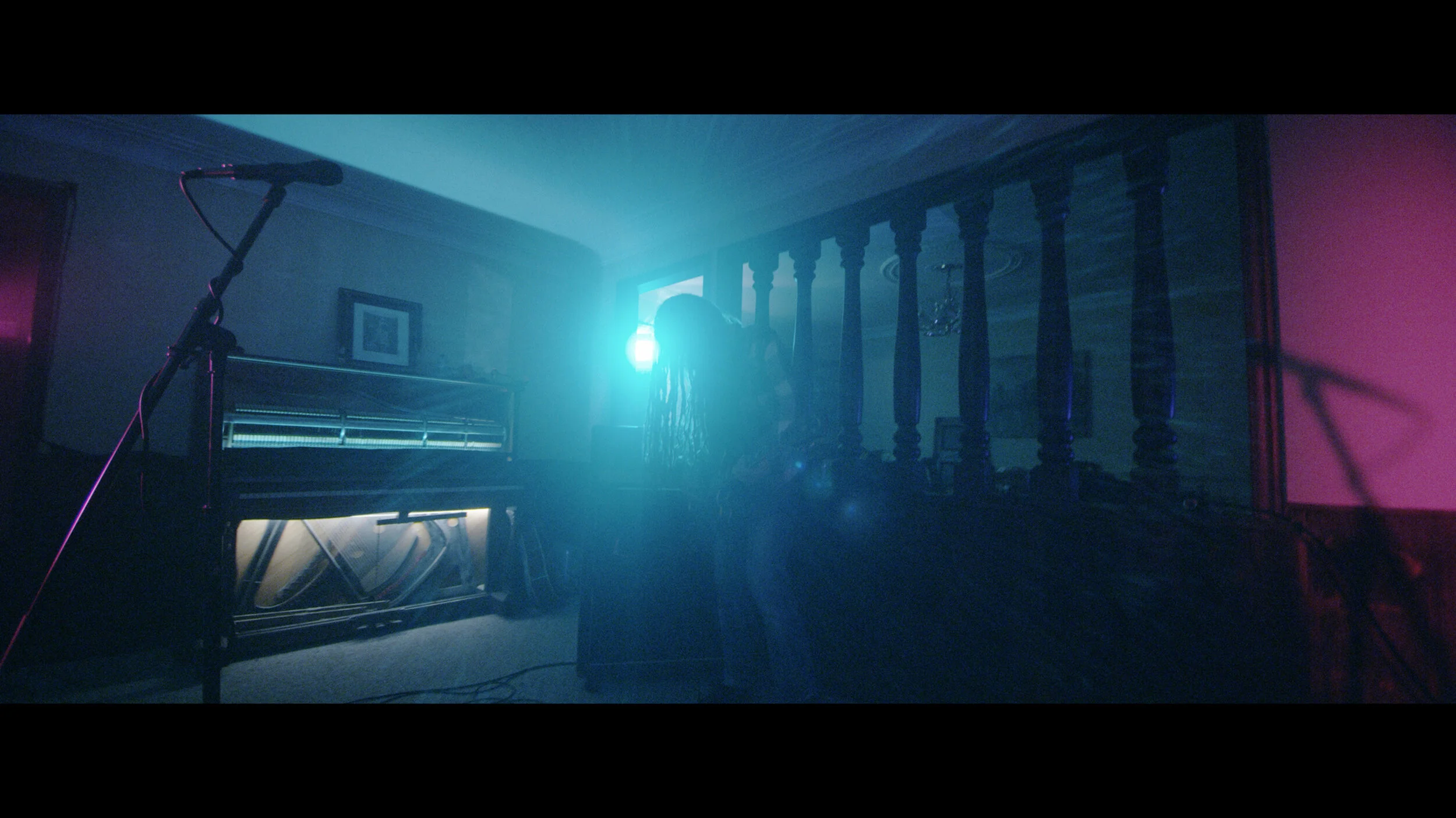 For Jahmeel the footage shot at 60FPS really worked for his singing. I wanted to create a sense of uneasiness an unpredictability. I used projector to illuminate his body in and out of darkness.